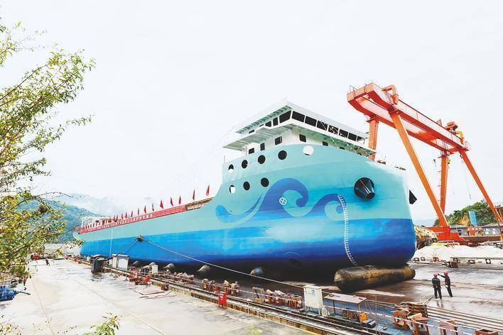 “葛洲坝”号在宜昌秭归顺利下水。(湖北日报通讯员 黄翔 摄)